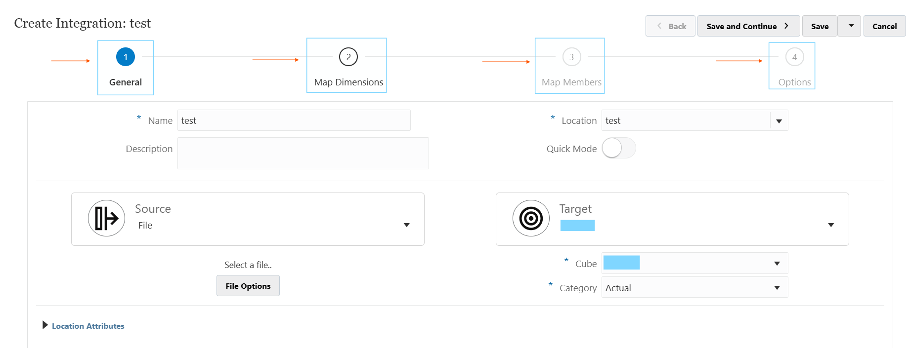 File name is the selection of the file to use to load as the source file. Or it would automatically be picked up if it’s connecting to a cloud source system like ERP Fusion.